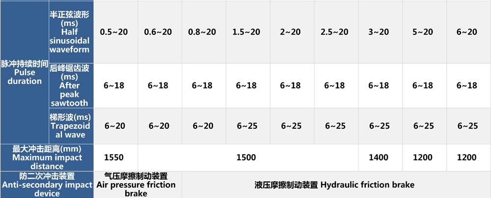 公司產(chǎn)品樣本中分別標注出了各型號氣動沖擊碰撞試驗臺的空載和標稱加載狀態(tài)下的速度變化量,用戶可根據(jù)自身試驗指標來選擇適合自身需求的沖擊臺。
